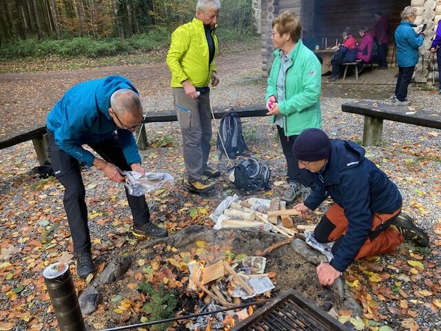 Ausstieg Hirsegg, Wanderstöcke werden ausgepackt! -
